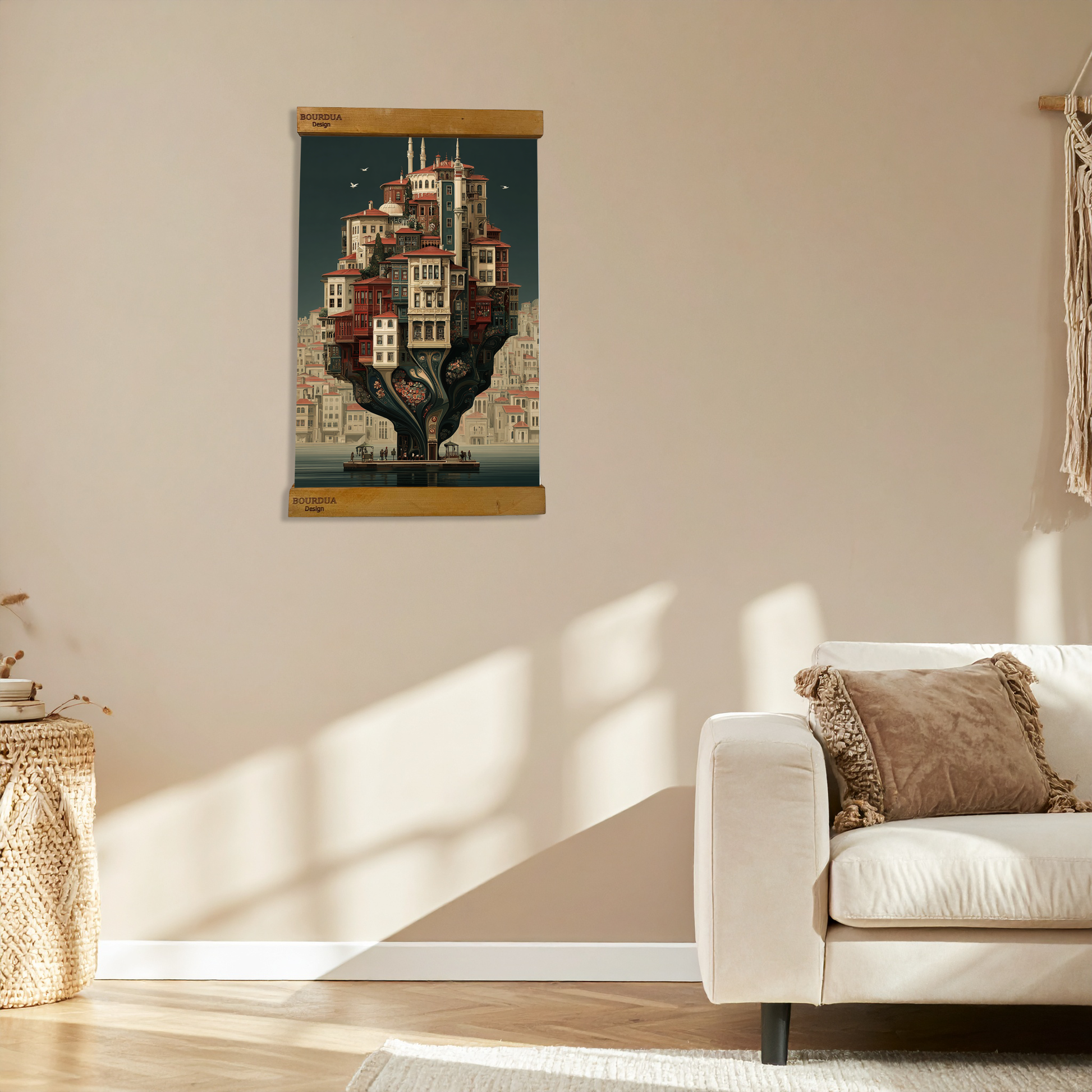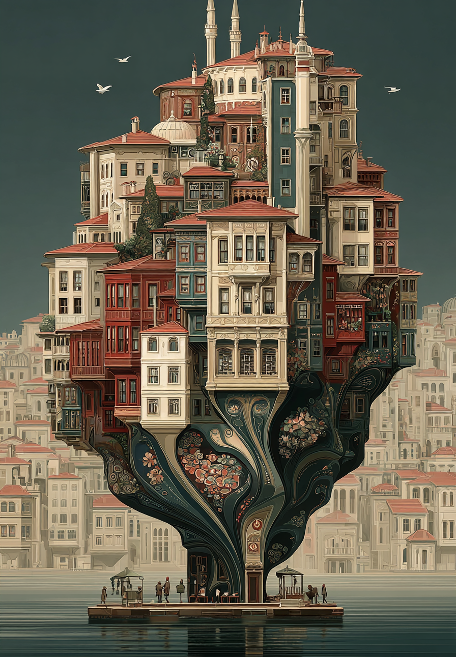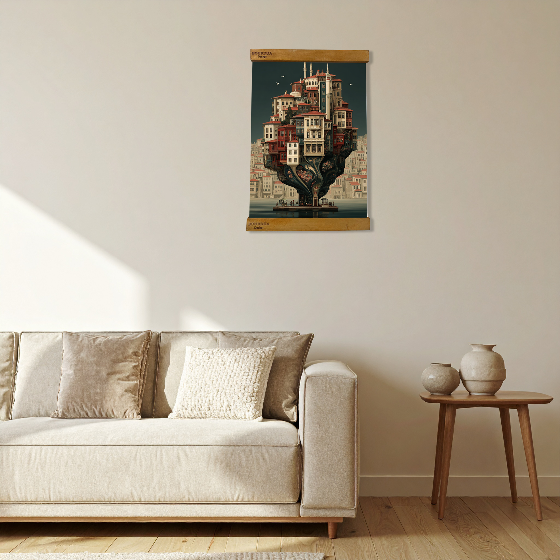 Taş ve hava arasındaki hassas denge. Bu ruhani kule, ışığın hiç sönmediği bir ufka uzanarak saf beyaz bulutların içinden yükseliyor. Hafiflik, zarafet ve sonsuz boşluk hissini duvarlarınıza taşımak için tasarlanmış; berraklık ve umut üzerine görsel bir meditasyon.